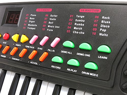 - Our electronic keyboard features 10 tones, 10 rhythms, six demo songs, a lesson mode and seven different sound effects.
